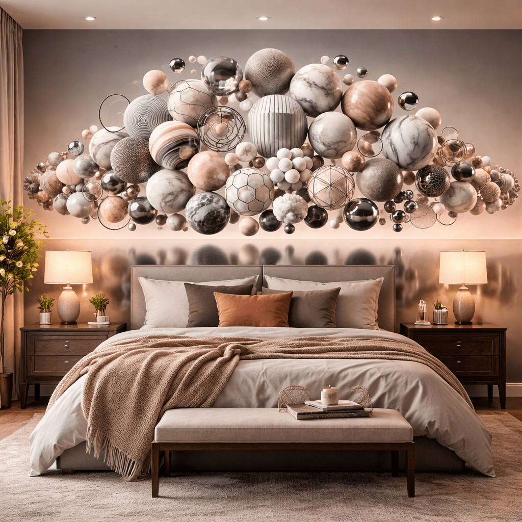 3D Mermer Metalik Küreler Duvar Kağıdı