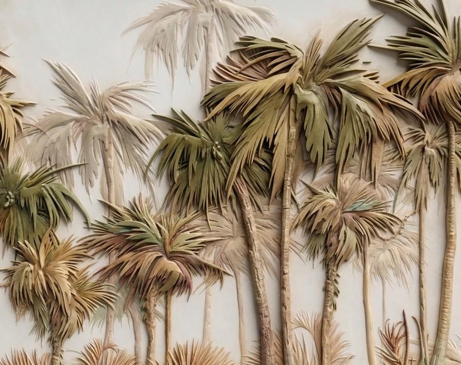 5D Kabartma Görünümlü Tropikal Palmiye Ormanı Duvar Kağıdı.