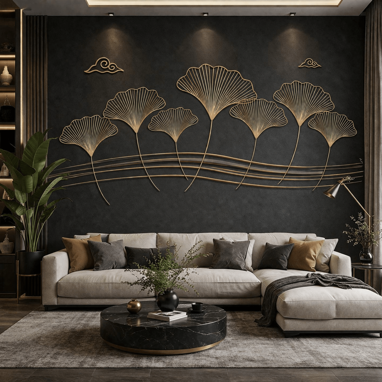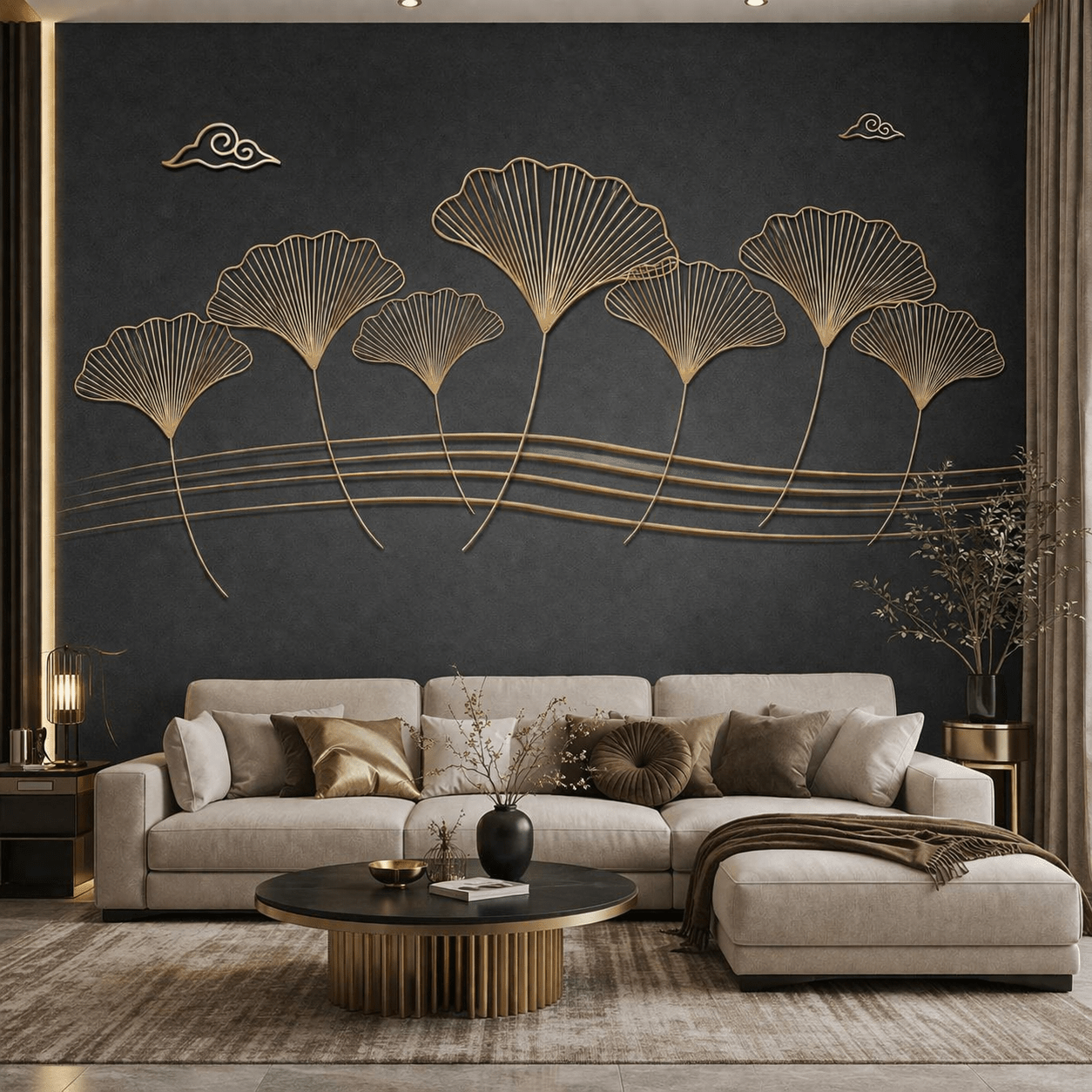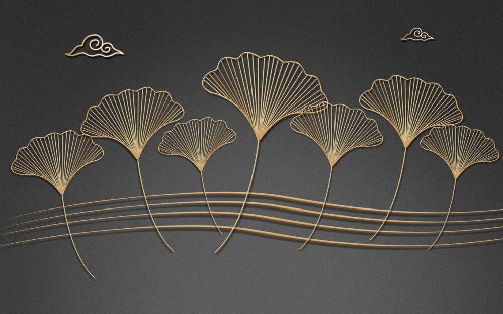 - Altın ginkgo yaprak motifleri ile şık tasarım