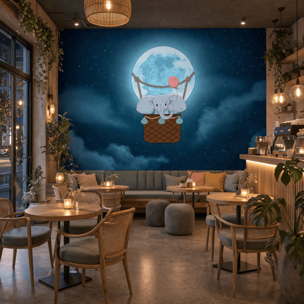Ay Işığında Uçan Fil Çocuk Odası Duvar Kağıdı