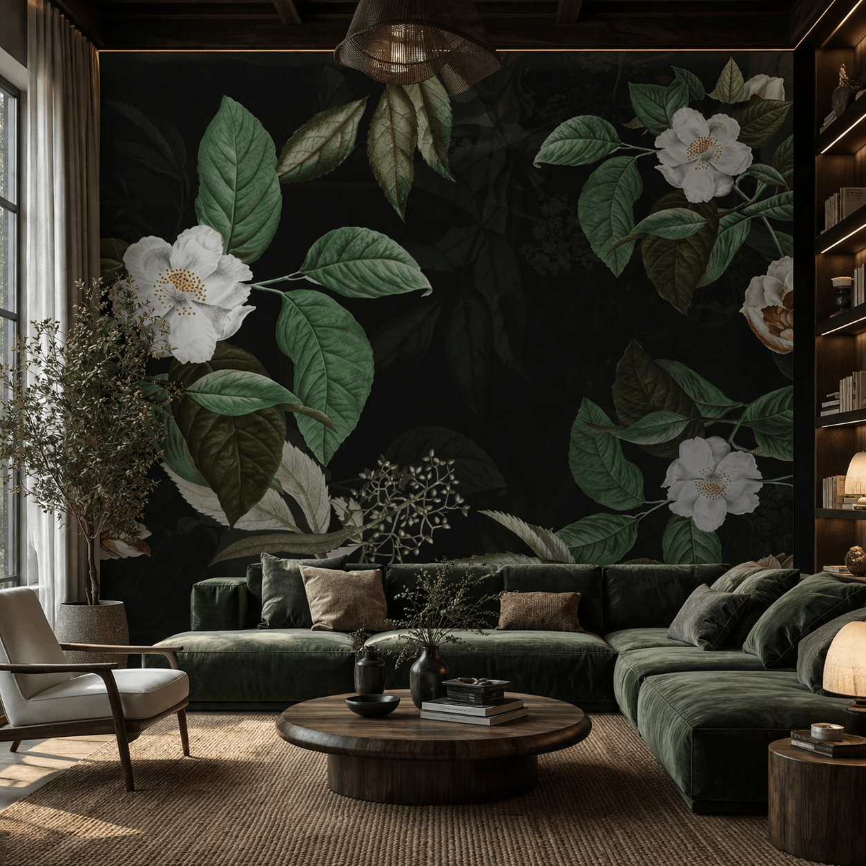 Karanlık Zemin Beyaz Çiçek Desenli Duvar Kağıdı, doğanın zarif dokusunu modern ve sofistike bir tasarımla buluşturan etkileyici bir duvar kaplama seçeneğidir. Siyah zemin üzerinde öne çıkan beyaz çiçekler ve detaylı yeşil yapraklar, mekânlarınıza derinlik ve şıklık kazandırır. Karanlık Zemin Beyaz Çiçek Desenli Duvar Kağıdı, özellikle salon, yatak odası ve kafe dekorasyonlarında güçlü bir odak noktası oluşturur. Kontrast renk yapısı sayesinde hem modern hem de klasik dekorasyonlarla uyum sağlar.