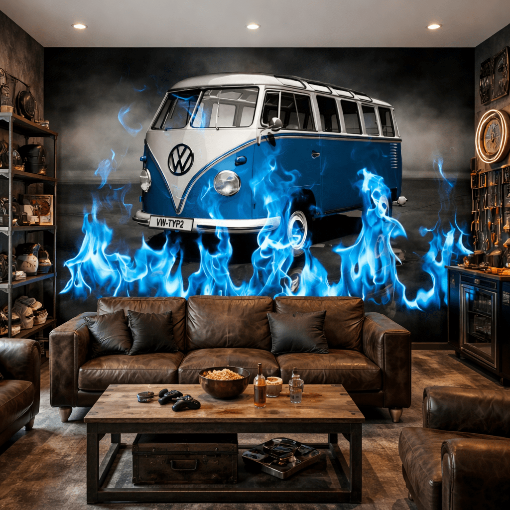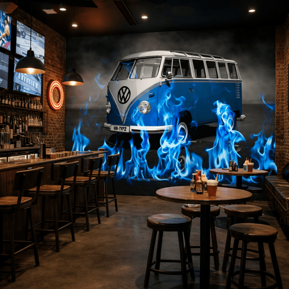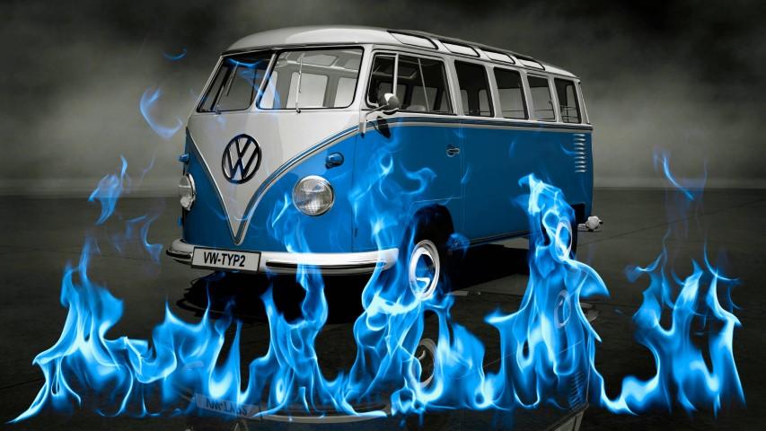 Mavi Alevli Klasik Minibüs Duvar Kağıdı