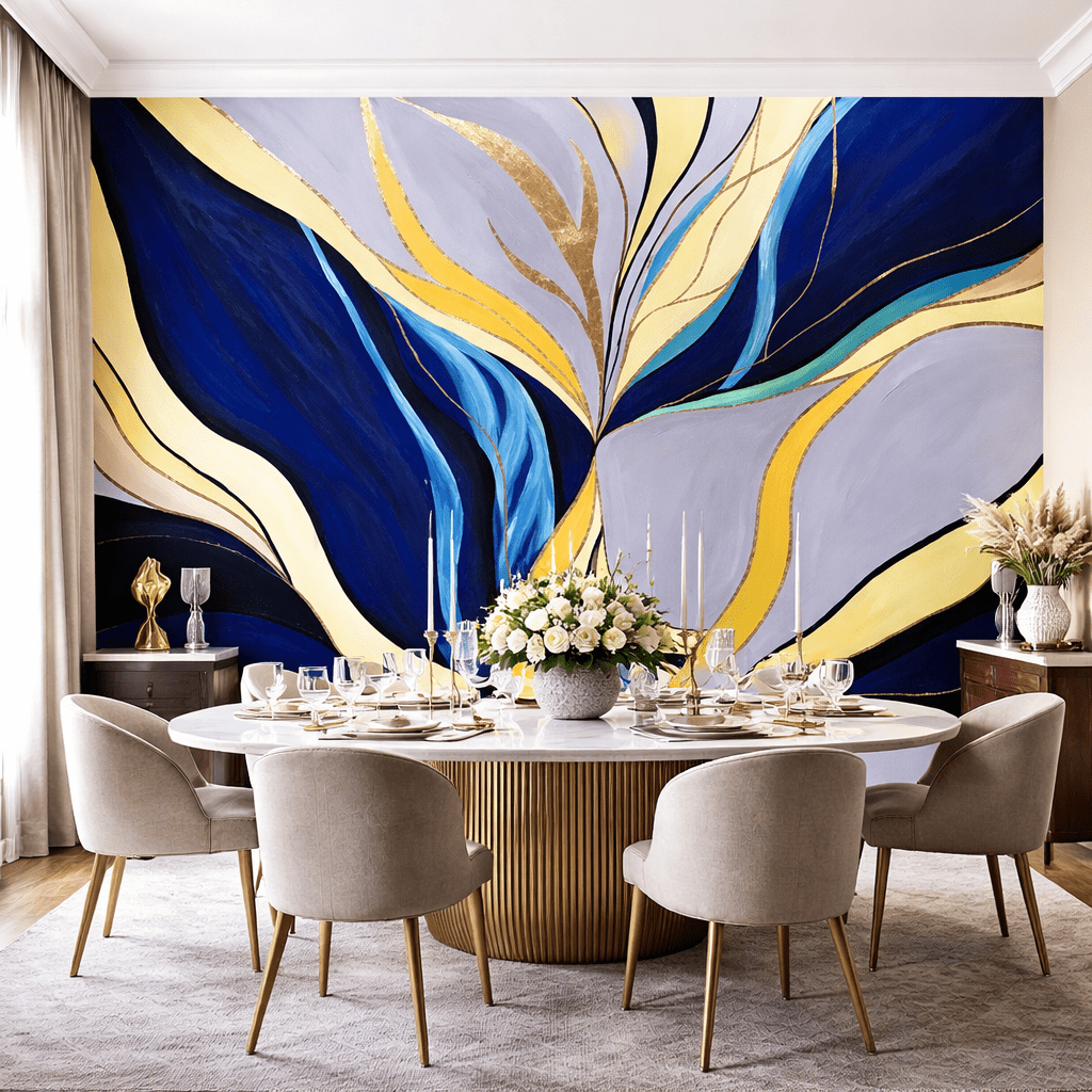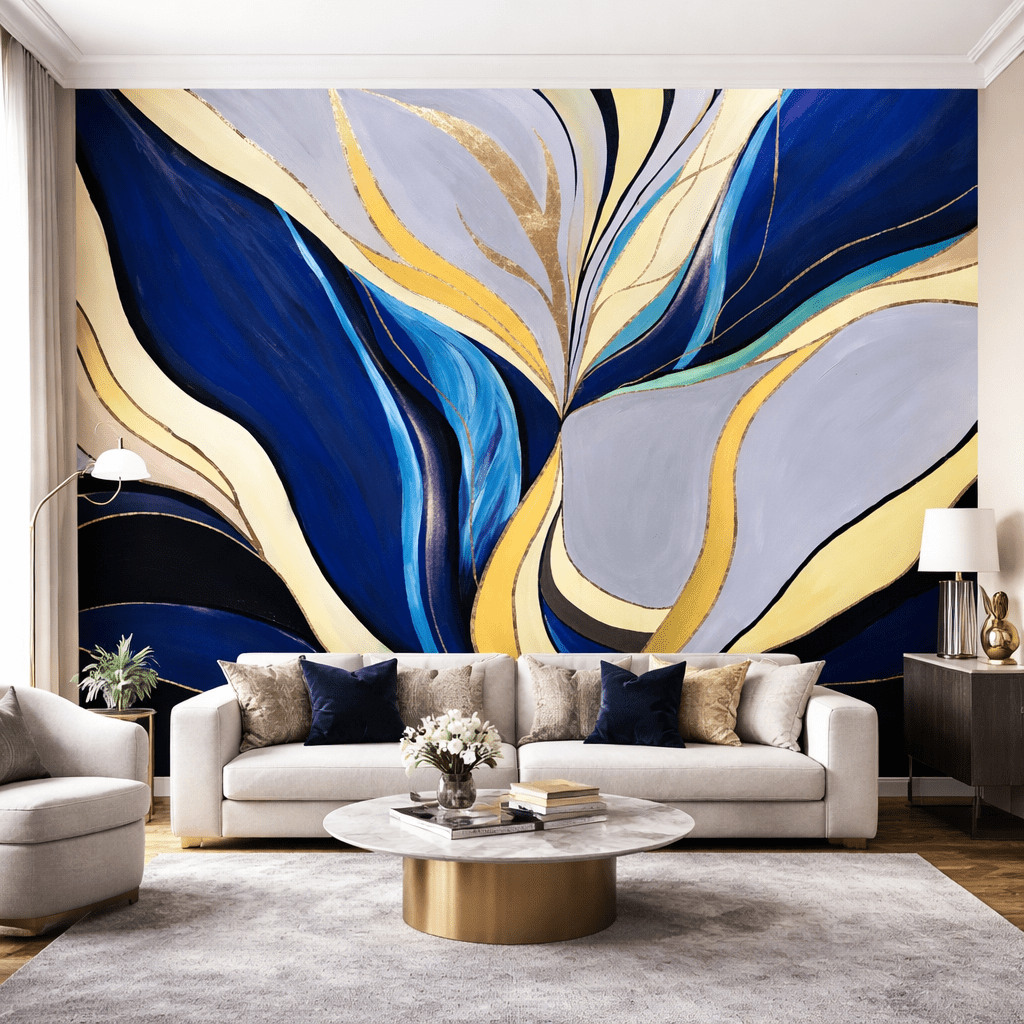 Modern Altın Detaylı Mavi Soyut Desen Duvar Kağıdı, yaşam alanlarınıza güçlü bir estetik ve sanatsal dokunuş kazandırır. Derin mavi tonları, gri ve krem geçişleri ile birleşen altın detaylar, duvarlarda lüks ve modern bir görünüm oluşturur. Akışkan soyut desen yapısı sayesinde mekana hareket ve derinlik katar. Modern Altın Detaylı Mavi Soyut Desen Duvar Kağıdı, özellikle salon, yemek odası ve ofis dekorasyonlarında dikkat çekici bir odak noktası yaratır ve bulunduğu ortama premium bir hava kazandırır.