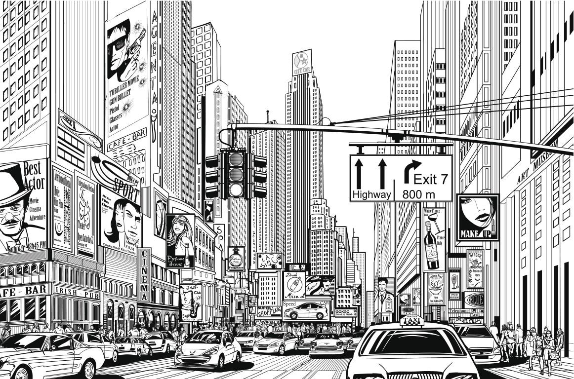 - Siyah beyaz şehir temalı modern çizim tasarım