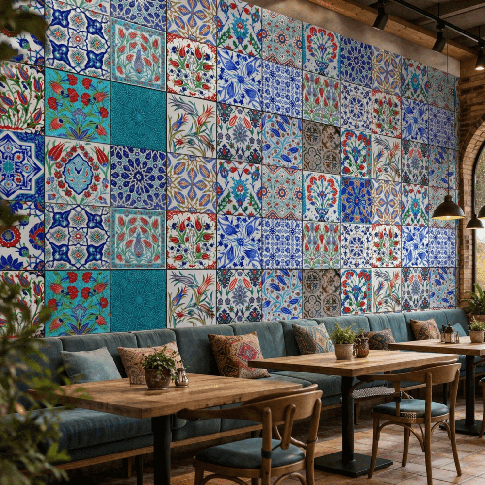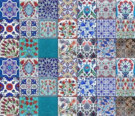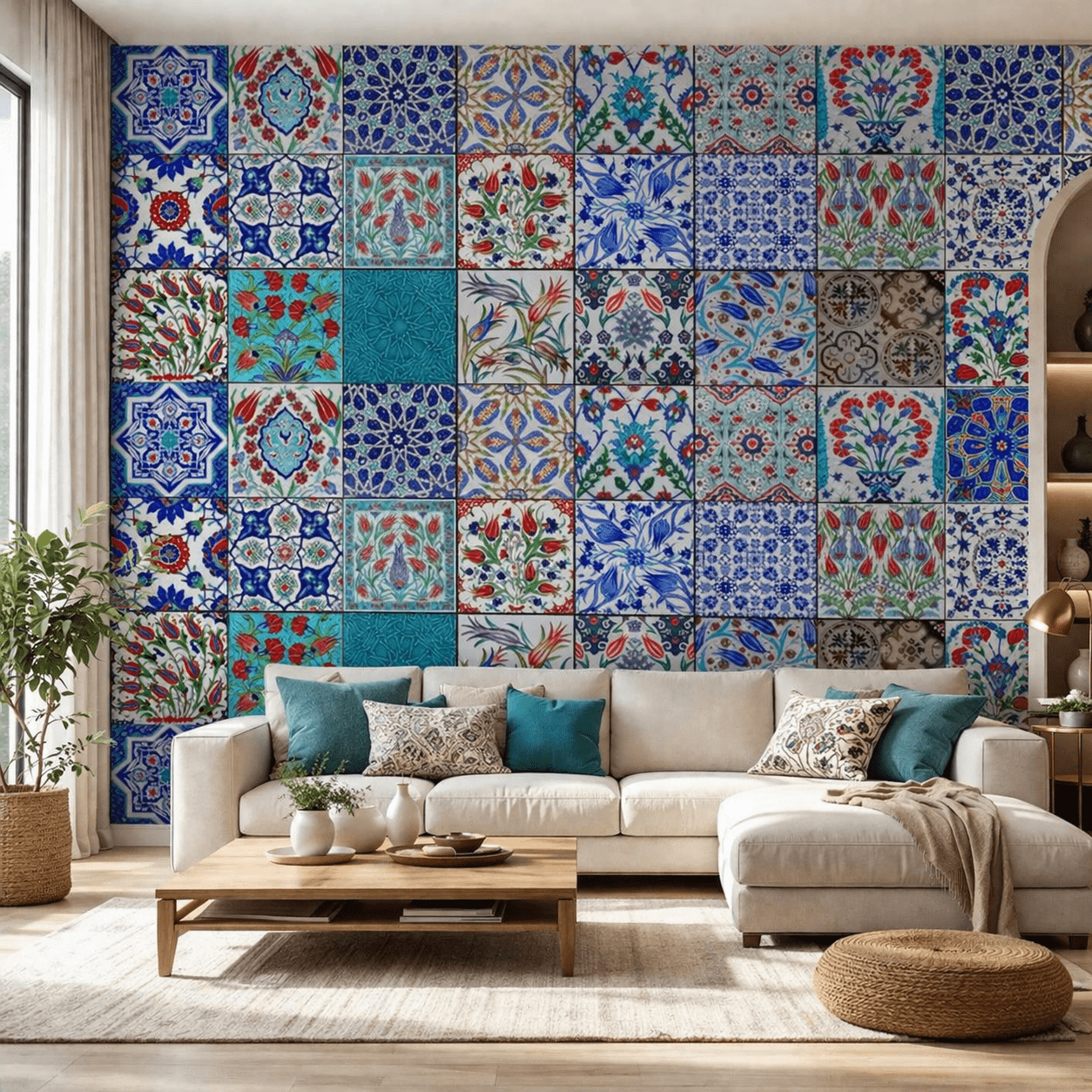 Osmanlı Çini Desenli Renkli Mozaik Duvar Kağıdı