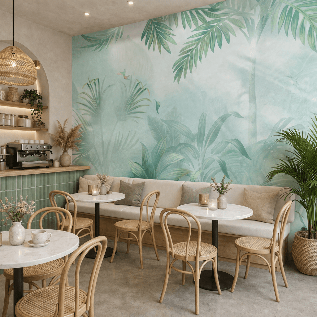 Pastel Tropikal Yaprak Desenli Duvar Kağıdı, ferahlatıcı yeşil tonları ve yumuşak geçişli tropikal yaprak desenleriyle yaşam alanlarınıza doğal ve huzurlu bir atmosfer kazandırır. Sisli arka plan efekti ile derinlik hissi oluşturan bu özel tasarım, duvarlarda sakin ve modern bir görünüm sunar. Pastel Tropikal Yaprak Desenli Duvar Kağıdı, özellikle salon, kafe, oturma odası ve dinlenme alanlarında doğayla iç içe bir ambiyans yaratır. Açık renk paleti sayesinde mekânı daha geniş ve aydınlık gösterir.