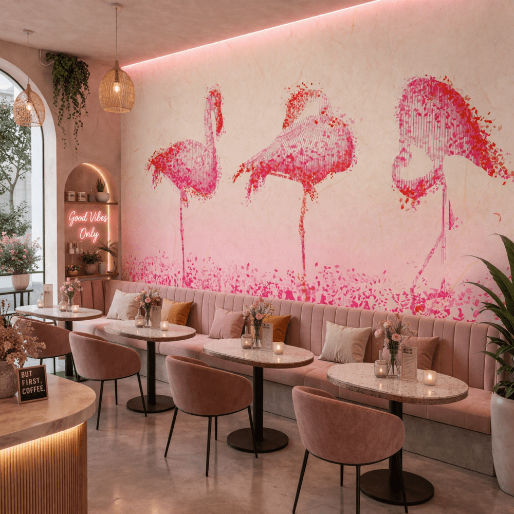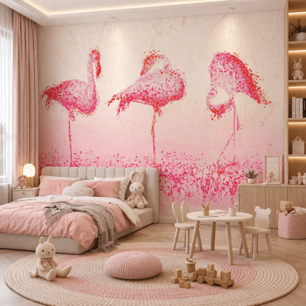 Pembe Flamingo Sanatsal Desenli Duvar Kağıdı, modern ve sanatsal dokunuşlarıyla yaşam alanlarınıza enerjik ve estetik bir hava kazandırır. Suluboya efektiyle tasarlanmış flamingo figürleri, duvarlara hareket ve derinlik katarken yumuşak pembe tonları mekanda huzurlu ve ferah bir atmosfer oluşturur. Hem çocuk odası hem de genç odası, yatak odası ve cafe gibi alanlarda dikkat çekici bir dekoratif unsur olarak öne çıkar. Pembe Flamingo Sanatsal Desenli Duvar Kağıdı, özgün tarzı ve canlı görünümü ile mekanlarınıza modern bir karakter kazandırır.