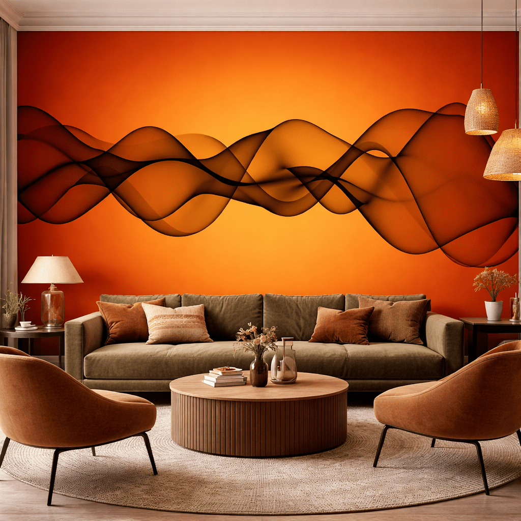 Turuncu Dalga Desenli Modern Duvar Kağıdı