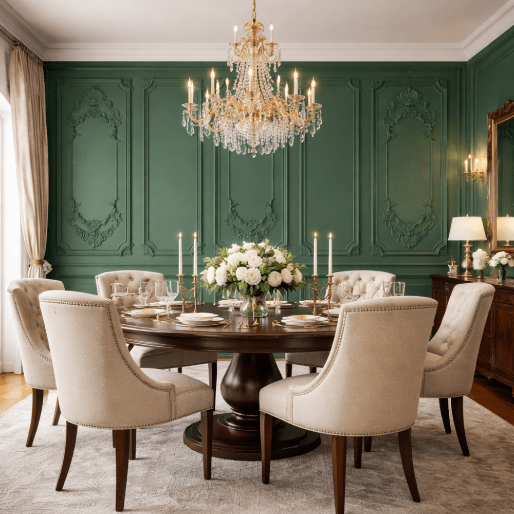Zarif ve zamansız tasarımıyla öne çıkan Yeşil Klasik Çıtalı Duvar Kağıdı, yaşam alanlarınıza asil ve sofistike bir hava kazandırır. Fransız tarzı dekoratif çıta detayları ve derin yeşil tonları sayesinde duvarlarınızda güçlü bir karakter oluşturur. Salon, yemek odası ve klasik dekorasyon tarzına sahip mekânlar için mükemmel bir tamamlayıcıdır.